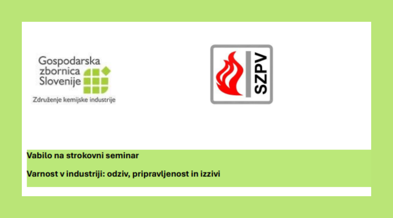 Slovensko združenje za požarno varstvo (SZPV) v sodelovanju z Združenjem kemijske industrije (ZKI) pri GZS vabi na strokovni seminar, 15. oktobra 2025, posvečen izboljševanju varnosti v industriji.