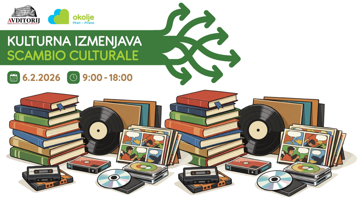 Naj kroži kulturaJavno podjetje Okolje Piran in Avditorij Portorož bosta slovenski kulturni praznik obeležila z izmenjavo knjig, plošč, stripov ter zvočnih in video nosilcev, s katero spodbujata kroženje kulturnih vsebin in ponovno uporabo. Dogodek bo potekal v petek, 6. februarja, od 9. do 18. ure v atriju Avditorija Portorož. Izmenjava se uradno zaključi ob 18. […]