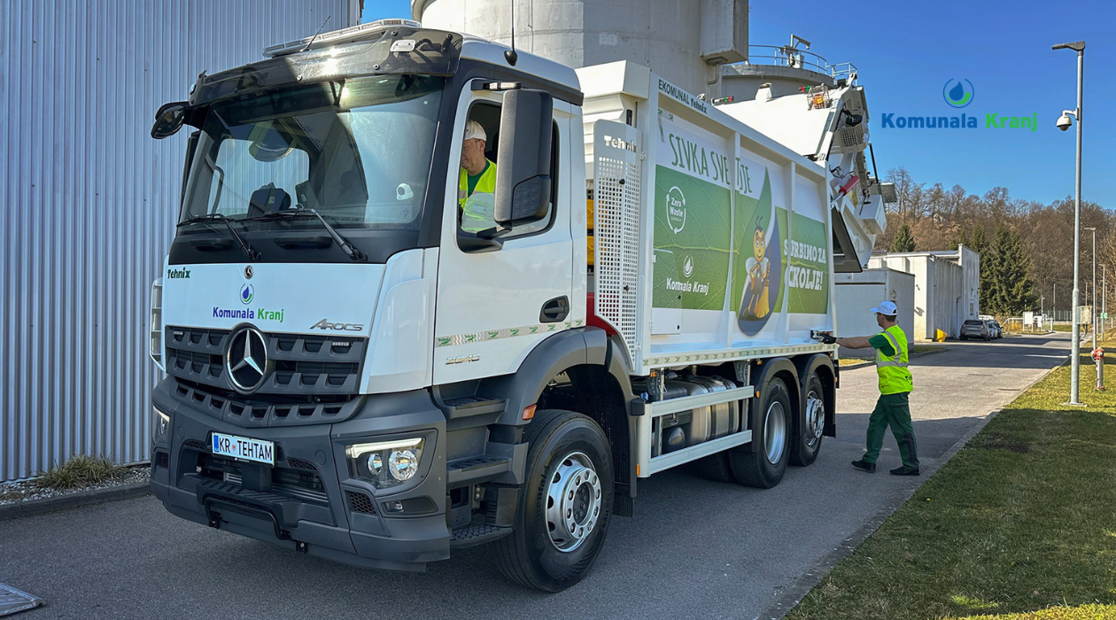 Komunala Kranj je svoj vozni park okrepila z novim sodobnim smetarskim vozilom, ki omogoča tehtanje posameznih zabojnikov neposredno med postopkom praznjenja.