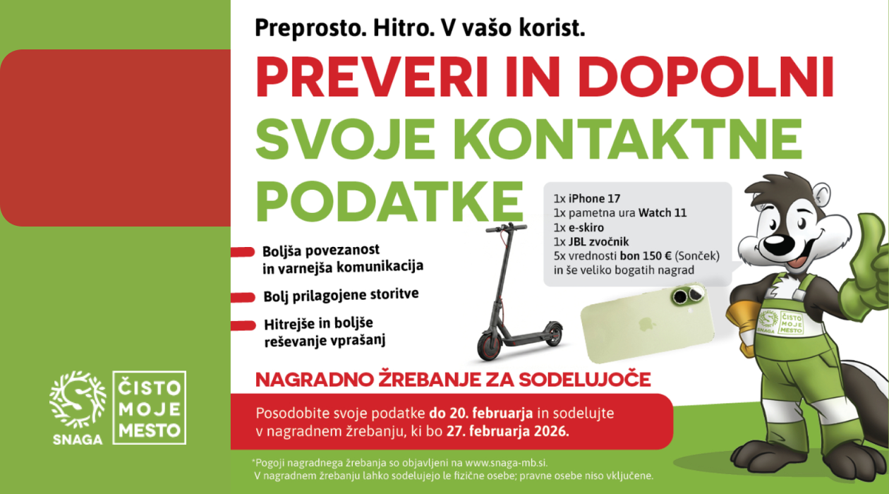 V Javnem podjetju Snaga uporabnike ponovno pozivajo k pregledu in posodobitvi kontaktnih podatkov. Uporabniki sodelujejo v nagradni igri.