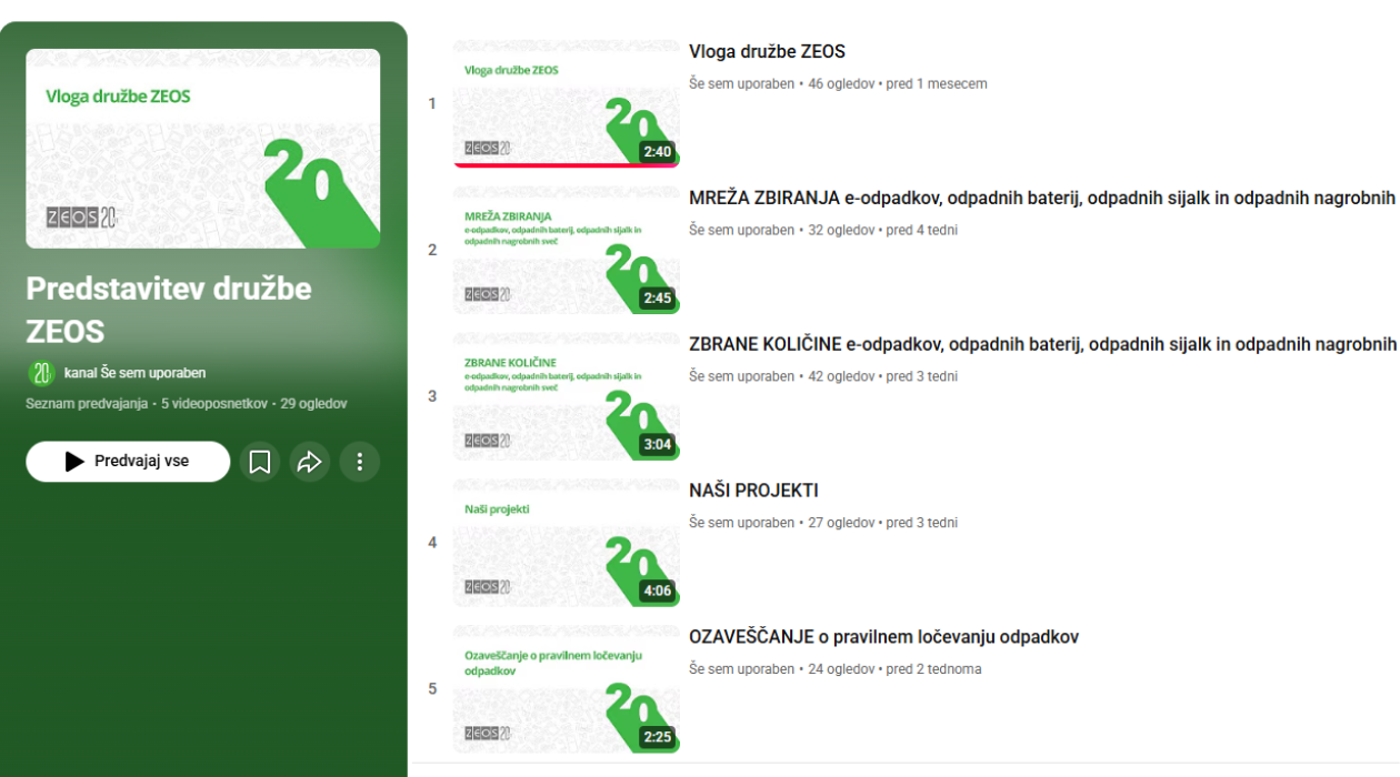 Novi video zapisi ob 20. letnici delovanja družbe ZEOS.