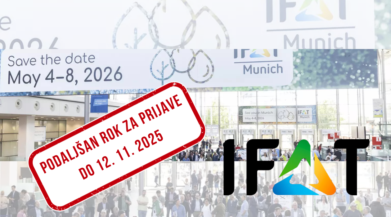 Na ZKGS skupaj s Slovenskim društvom za zaščito voda organiziramo strokovno ekskurzijo na sejem IFAT 2026 v München od 4. do 6. maja 2026. Rok za prijave je podaljšan do 12. novembra 2025 oziroma do zapolnitev mest.