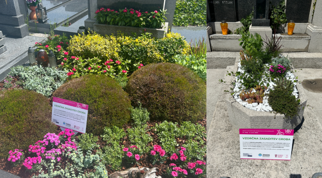 Po zaključku so si udeleženci dogodka ogledali trajnostne primere zasaditev na pokopališču ter vzorčno urejena grobna mesta.