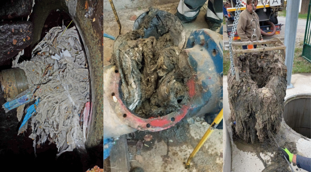 Komunalna podjetja se dnevno srečujejo z izzivom odpadkov v kanalizacijskem omrežju, črpališčih in čistilnih napravah. Hrana, gradbeni material, tekstil in higienski pripomočki so žal stalnica v kanalizacijskem omrežju. V kanalizacijskih sistemih in čistilnih napravah pa vedno več težav povzročajo tudi vlažilni robčki. Čeprav so nekateri robčki celo označeni kot biološko razgradljivi, se v vodi ne razgradijo dovolj hitro. Namesto da bi razpadli, se ujamejo v črpalke in cevi ter skupaj z maščobami in drugimi odpadki tvorijo trdne zamaške, ki ovirajo pretok odpadne vode in povzročajo okvare opreme. Posledica so okvare in večja poraba energije.