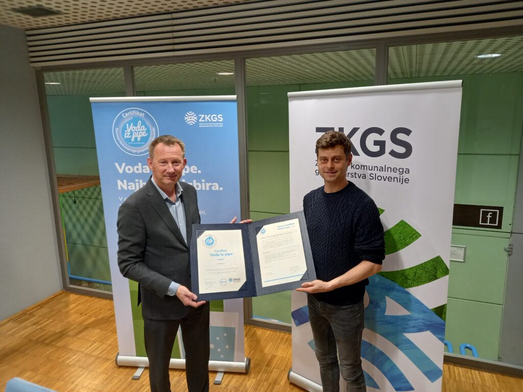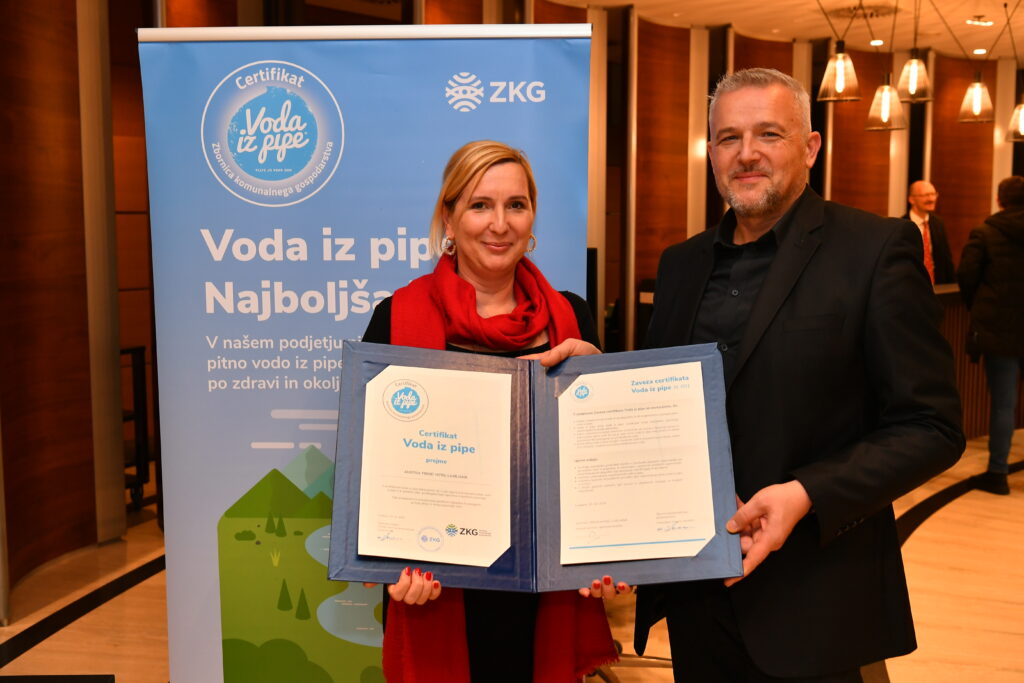 Certifikat “Voda iz pipe” je simbol odgovornega ravnanja z vodnimi viri ter spodbuja uporabo kakovostne pitne vode iz pipe. Zbornica komunalnega gospodarstva Slovenije čestita prejemnikoma in ju spodbuja k nadaljnjemu trajnostnemu delovanju.